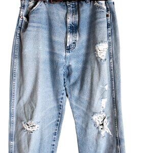 Wrangler Boyfriend Jeans 36x34 Organic Distressed Ripped Worn Blue Denim Destroy
