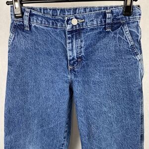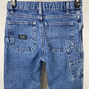 Wrangler carpenter pants denim jeans in size 12. Adjustable waist. Great condition. Ships fast from a smoke free home.