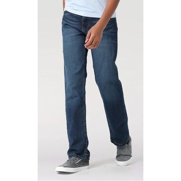 New with tags Wrangler Five Star Premium boys jeans. Classic straight leg in a versatile medium blue wash with Free to Stretch fabric for extra comfort and movement. Adjustable waistband for a better fit as he grows.