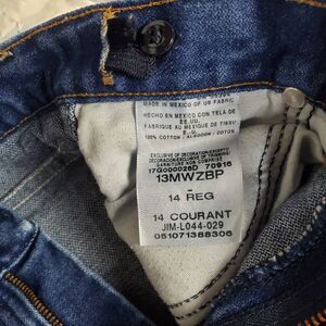 Classic Wrangler boys’ jeans in size 14 Regular. Durable 100% cotton denim, made in Mexico with USA fabric. Adjustable waist for a comfortable fit. Straight leg design, perfect for everyday wear.