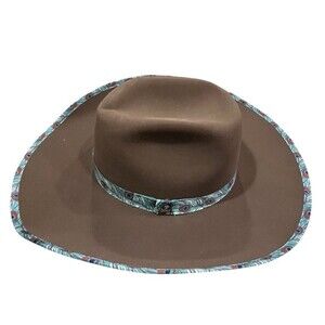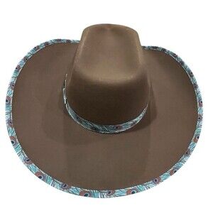 Stylish brown hat by Wrangler. Features a unique patterned trim. Perfect for any occasion.