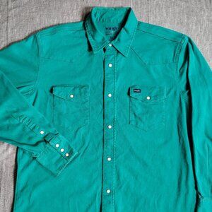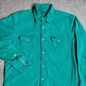Wrangler Brushpopper Shirt Size XLT Turquoise Solid Pearl Snap Western Yoke