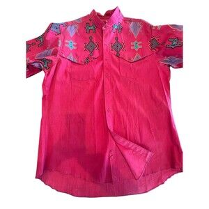 Wrangler Brushpopper Vintage Shirt RARE Caped Band Collar Mens Sz 17 1/2-35 SZ XL Made in USA