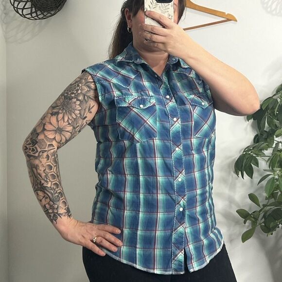 Women’s size Large Wrangler sleeveless button down.