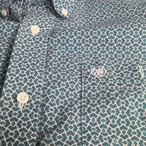 Wrangler Button Down Shirt Long Sleeve Blue Geometric