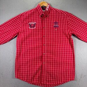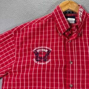 Wrangler Button Down Shirts Men Medium Red Windowpane Actra Roping Patriot Rodeo