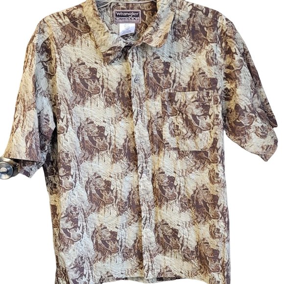 Wrangler CamoDog Men's SS Button Down shirt. Sz Large EUC