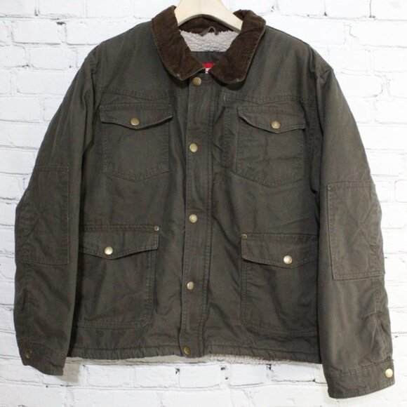 Wrangler Canvas Sherpa Lined Barn Chore Work Jacket Mens 2XL Olive Double Elbow