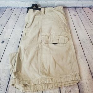 Wrangler Cargo Shorts 44 Stretch Tan Hero Deep Pockets Belted-Flawed