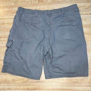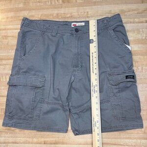 Keywords: wrangler cargo shorts, gray men’s shorts, stretch cotton shorts, outdoor casual wear, utility shorts, men’s size 36, durable work shorts, neutral summer shorts