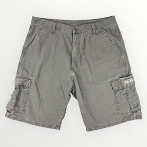 Wrangler Cargo Shorts Men's Slightly Distressed Cotton Grey Casual Outdoor Summer Hiking Utility Short. Streetwear loose fit working handyman.