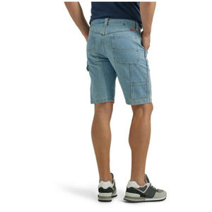 Wrangler Carpenter Shorts Mens Size 42 Blue Jeans Multi Pocket 10" inseam Cotton, spandex. Stretch fabric.