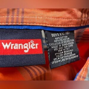 Classic Orange & Blue Plaid Wrangler Short Sleeve Boys XXLarge 18 Shirt EPC