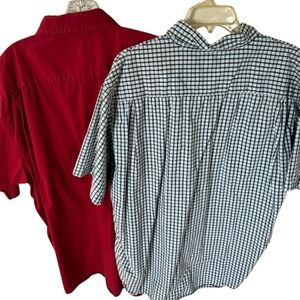 Upgrade your wardrobe with these stylish men's shirts. Featuring a bold red shirt and a classic green plaid checkered shirt, these pieces offer versatility and comfort. Perfect for any casual occasion.