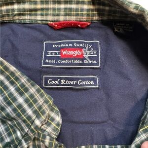 Wrangler plaid shirt, Cool River cotton shirt, men’s button down L, green plaid Western shirt, casual Wrangler shirt, long sleeve plaid shirt, cotton button down