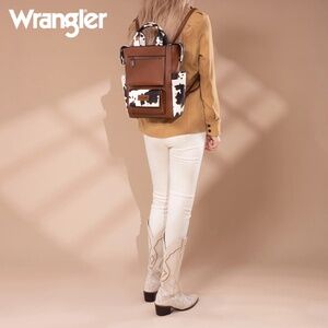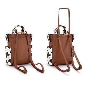 Wrangler Cow Print Tote/Shoulder Bag Convertible Backpack - Brown-Brown