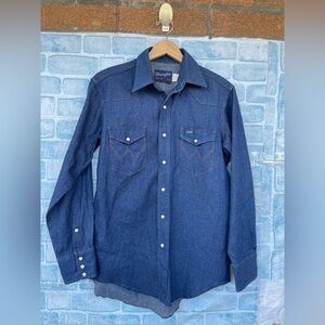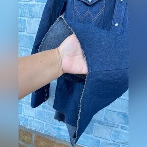 Wrangler Cowboy Cut Denim Shirt snap raw hem size 16/33
