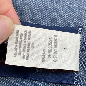 Vintage x long tales style featuring snap pearly buttons with a raw finish hem . Rare