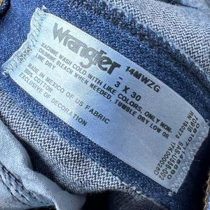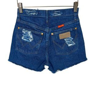 Wrangler Cowboy Cut Slim Fit Dark Blue Distressed Ripped Cut Off Shorts Size 3