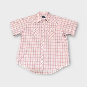 Wrangler Western Snap Shirt, Short sleeve - Men's 19 - Red blue windowpane plaid - Great, gently used condition.