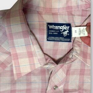 Wrangler Cowboy Cut Western Snap Shirt 19 Short Sleeve EUC Big Man Vintage Plaid