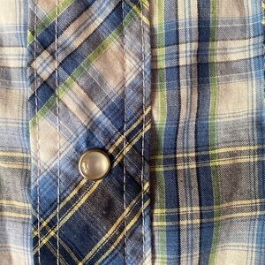 Wrangler Cowboy Retro Western Snap Pearl Sawtooth Pocket Plaid Shirt M
