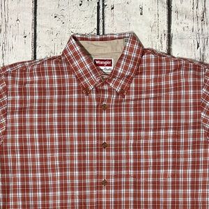Wrangler Cowboy Rockabilly Wrinkle Resist Plaid Short Sleeve Mens Button Down