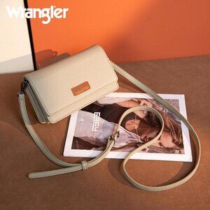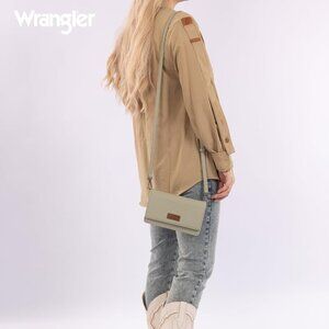 Born to be Versatile Wrangler small crossbody bags for women measures 5"H x 7.5"W x 2.5"D, offers multiple carrying options with an adjustable and removable shoulder strap , allowing it to be styled as a crossbody wallet, mini purse, clutch, or tossed into larger handbags as a wallet purse