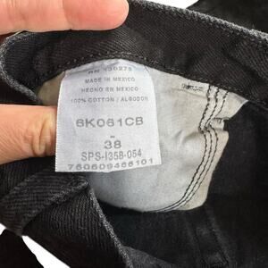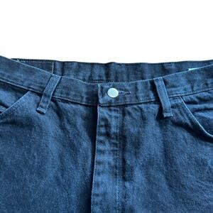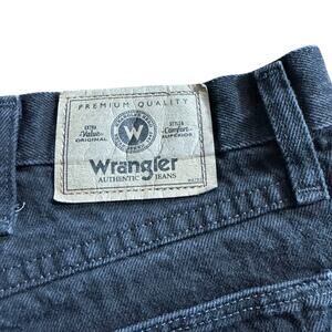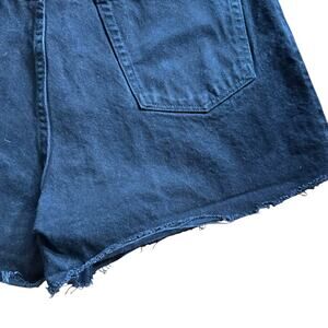 Wrangler Reworked Cut Off Black Denim Jean Shorts Raw Hem Size 38. I believe these shorts were once jeans and someone DIY-ed/reworked them into cutoff shorts. They are in men’s waist sizes. Good, preowned condition. Black. 5 pocket design. Raw hem. 100% cotton. Size 38 waist. High waisted High rise.