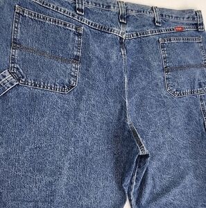 Gently used condition. Only flaw is discoloring mark, pictured. Wrangler Denim Carpenter Style Denim Shorts 100% Cotton. Size 46.