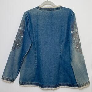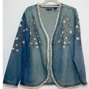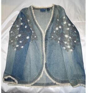 Wrangler Denim Embroidered Jacket - Size L - Open Jacket With Fringe