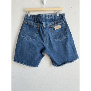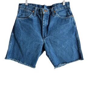 Wrangler Denim High Rise Shorts Women’s Size 33 Med Wash Raw Hem Rodeo Western