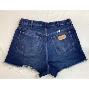 Wrangler Denim Shorts High Waisted Frayed Hem Dark Wash Casual size 32