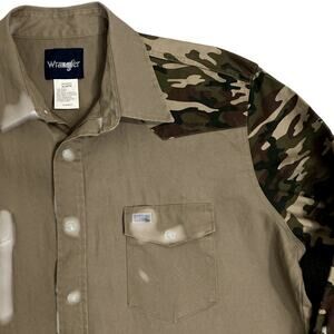 Wrangler Denim Western Shirt Mens XL Tan Camo Pearl Snap Hunting Cowboy