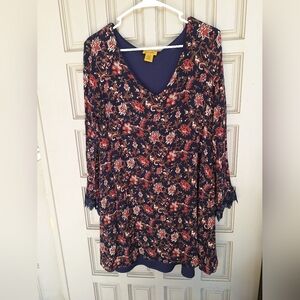Wrangler Dress SzL Junior Mini Navy Floral Print Lined Lace Trim Cuff Cute