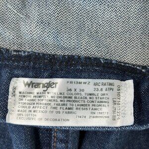 Wrangler FR Flame Resistant Work Jeans Size 36 x 30 Blue Straight Leg FR13MWZ