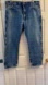 Distressed & worn with fraying, fading & a hole in pant leg bottom as shown in video & photo. Thick heavy jeans with lots of life left.