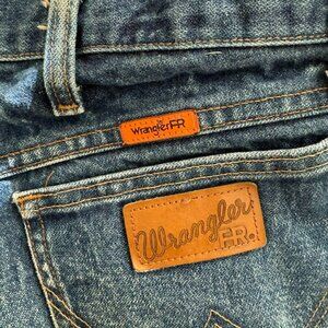 The Wrangler FR Jeans for Men in size 38x34 are designed for maximum flame resistance, making them ideal for colder temperatures and various industries. Featuring a high-rise fit and a relaxed straight style, these denim jeans have a classic 5-pocket design with a zip and button closure. The dark wash and solid blue color give them a timeless look, while the cotton fabric ensures durability and comfort. Perfect for year-round wear, these Wrangler jeans are machine washable and adorned with the brand's iconic logo accents, embodying a rugged cowboy theme.