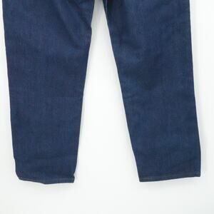 No distressing or fading, authentic deep blue denim wash