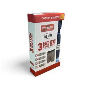 Wrangler Five Star 3-Pack Cotton Stretch Boxer Briefs, Size L, Navy, Gray, Blue