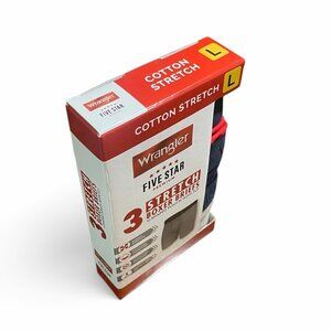 Wrangler Five Star 3-Pack Cotton Stretch Boxer Briefs, Size L, Navy, Red, Gray