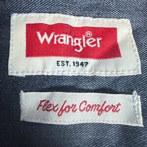 Casual, button‑down men’s shirt by Wrangler—‘Flex for Comfort’ line in soft gray. Crafted from a cotton‑poly‑spandex blend, it offers chill stretch and easy wear. Lightweight yet sturdy, with a relaxed fit and chest pockets. Perfect for everyday wear—casual, ranch, workwear, or layered over tees. Feel free to ask, and be sure to review all photos for condition.
