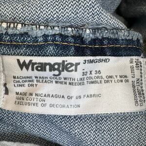 You're viewing a classic pair of Wrangler Cowboy Cut Men's Jeans in size 32x36. These jeans are known for their durability and authentic Western style.
