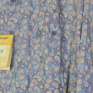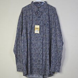 Wrangler George Strait Buttom Down Men's Blue Paisley Shirt Size XLT. NWT