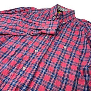 This Wrangler George Strait Cowboy Cut Collection shirt is a must-have for any stylish man. The medium-sized button-down shirt flaunts a pink and blue plaid design with long sleeves, perfect for everyday wear or special occasions.