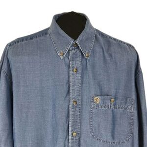 Wrangler George Strait Button Down Western Shirt Men's Medium Blue Chambray