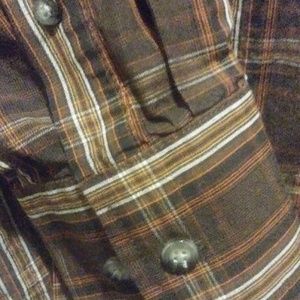 Like New, collar and cuffs show no wear, size Medium. There is a little rip in the white laundry tag which does not affect the actual shirt or then that it is like new.