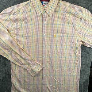 Wrangler George Strait Cowboy Cut Long Sleeve Button Up Shirt Orange Yellow