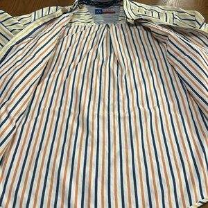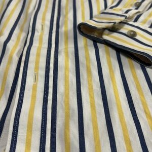 Stylish men's shirt featuring a classic striped design. The combination of yellow, blue, and white colors adds a vibrant touch to your wardrobe. Perfect for both casual and formal occasions. Cowboy collection, thick, sturdy material. Perfect condition.