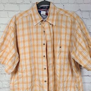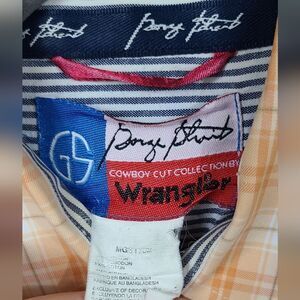 Wrangler George Strait Orange Plaid Cowboy Cut Button Down Pocket Western Shirt
